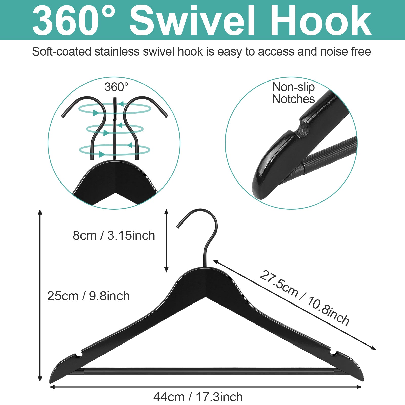 - True Black: The all-black color of the hanger adds a touch of taste and fashion to your home or store.